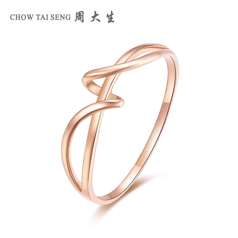周大生K金戒指女款18k玫瑰金几何彩金戒指 x1