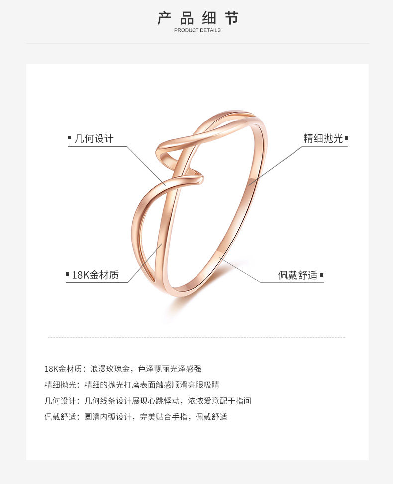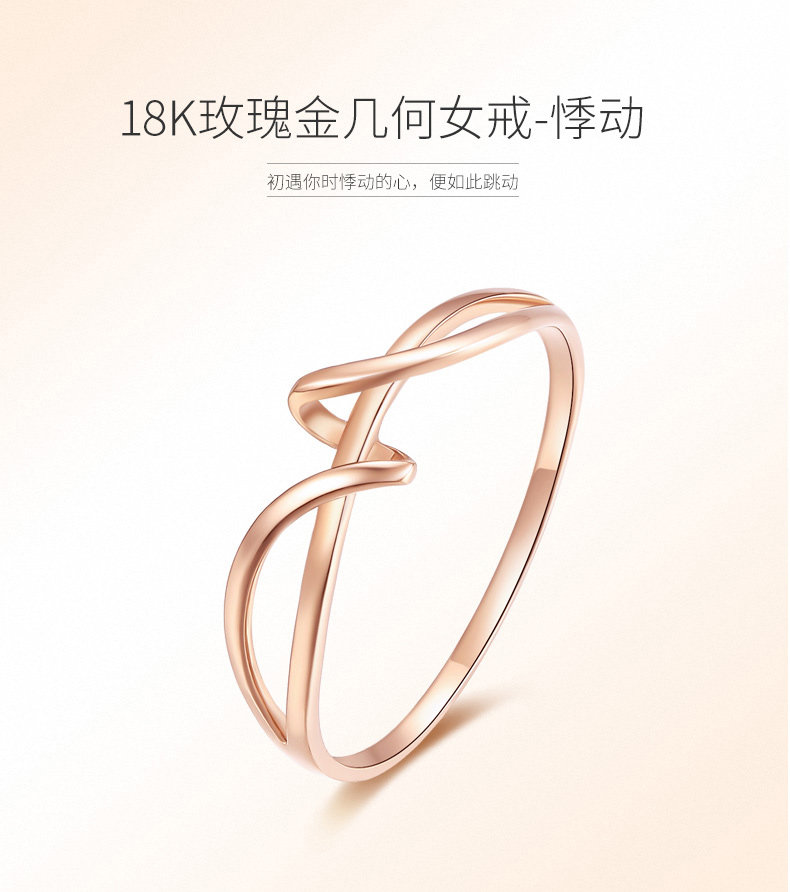 周大生K金戒指女款18k玫瑰金几何彩金戒指