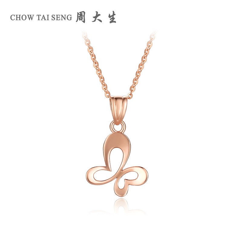 周大生玫瑰金吊坠AU750车花梦蝶挂坠