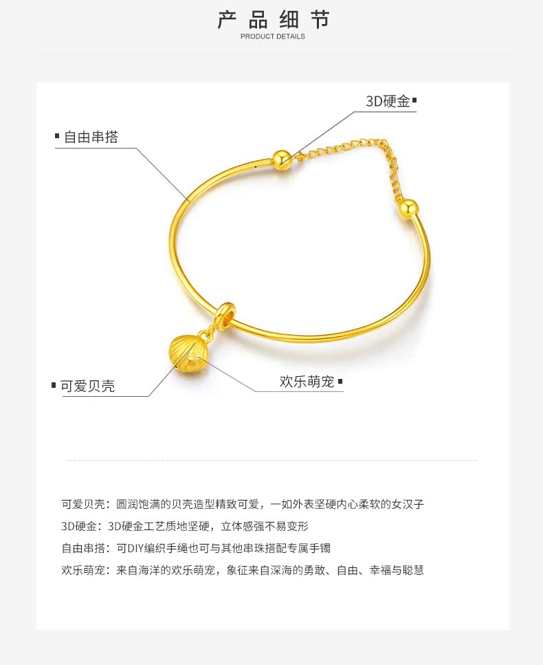 周大生黄金吊坠3D硬金海洋贝壳挂坠