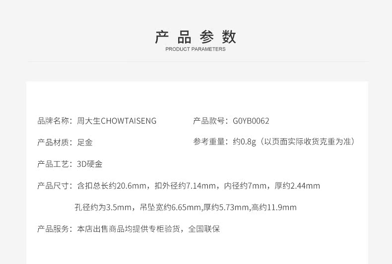 周大生黄金吊坠3D硬金海洋贝壳挂坠 x1