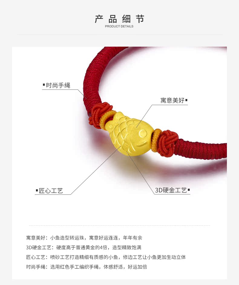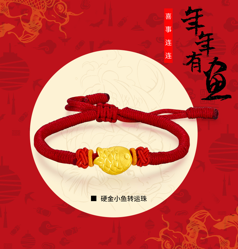 周大生黄金转运珠手链女3D硬金锦鲤鱼 x1