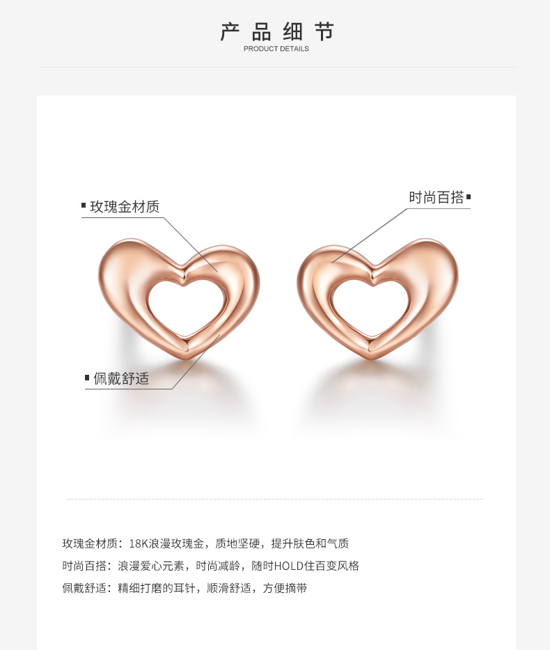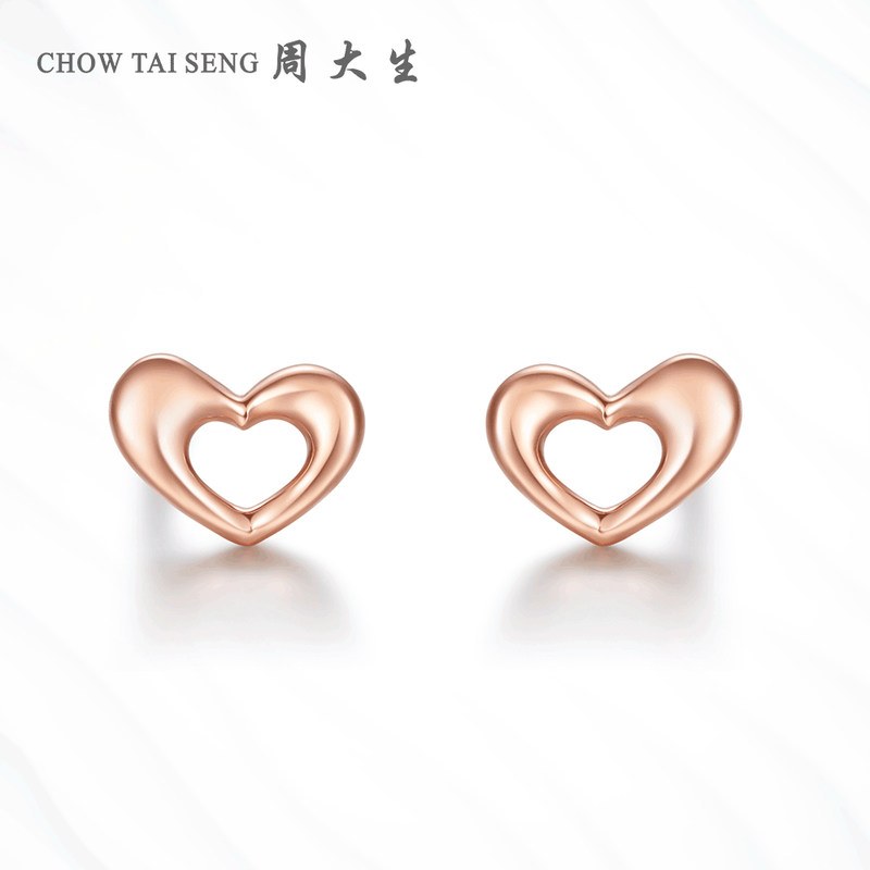 周大生彩金耳钉女心形爱心18k金耳环耳饰