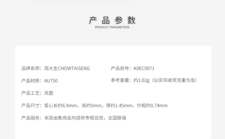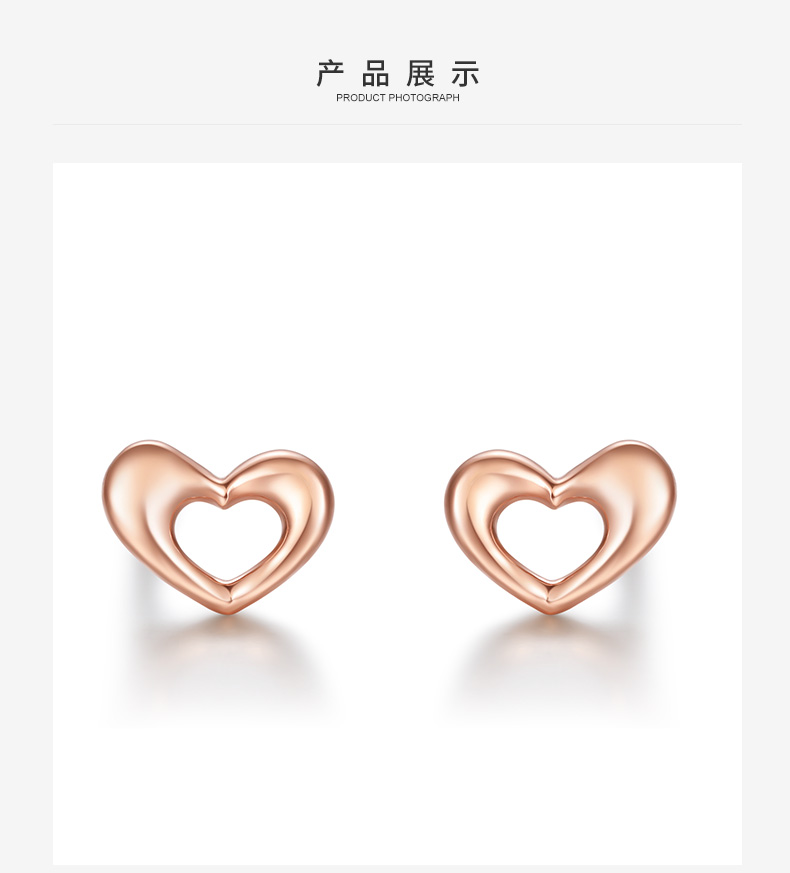 周大生彩金耳钉女心形爱心18k金耳环耳饰 x1
