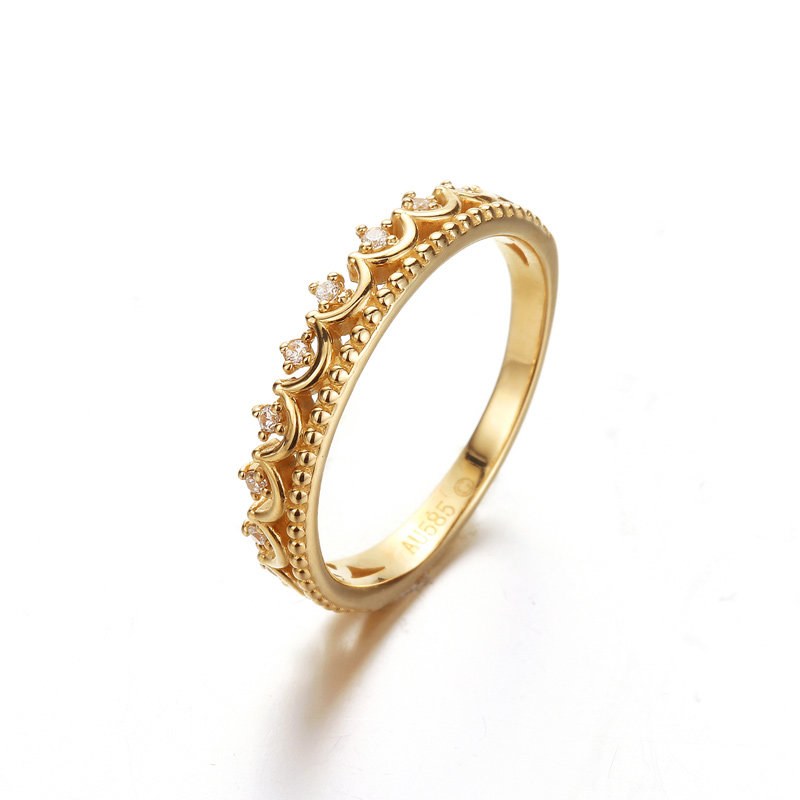 14K金女戒指环彩金皇冠ins日韩简约百搭