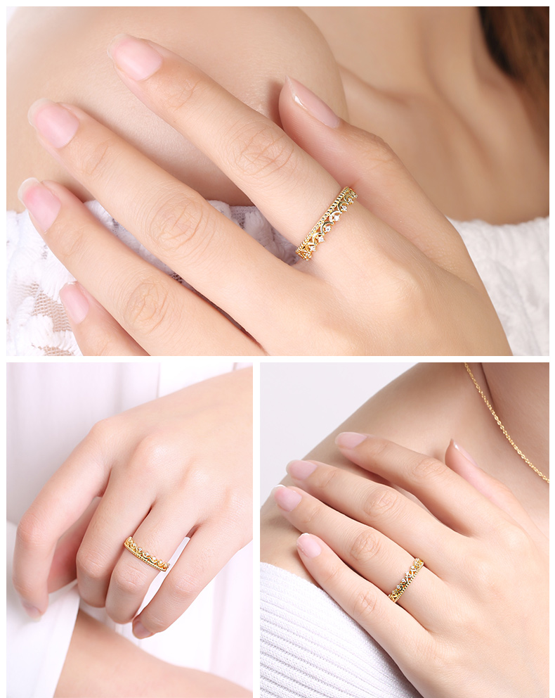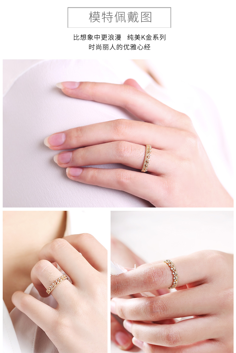 14K金女戒指环彩金皇冠ins日韩简约百搭 x1