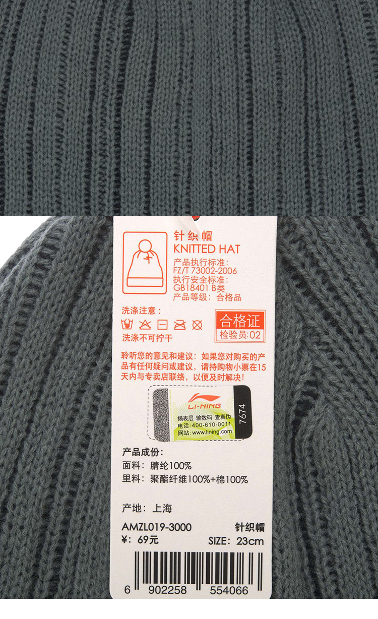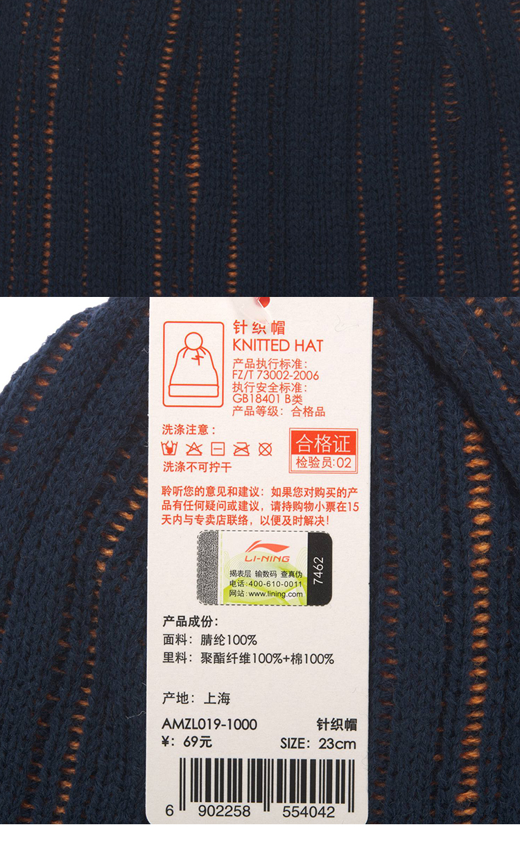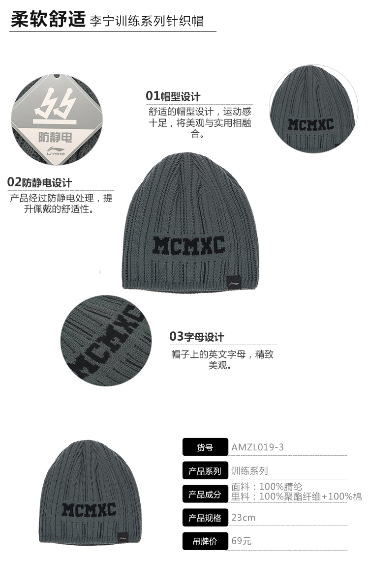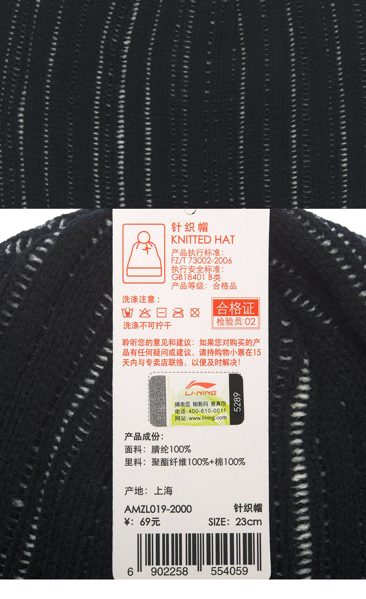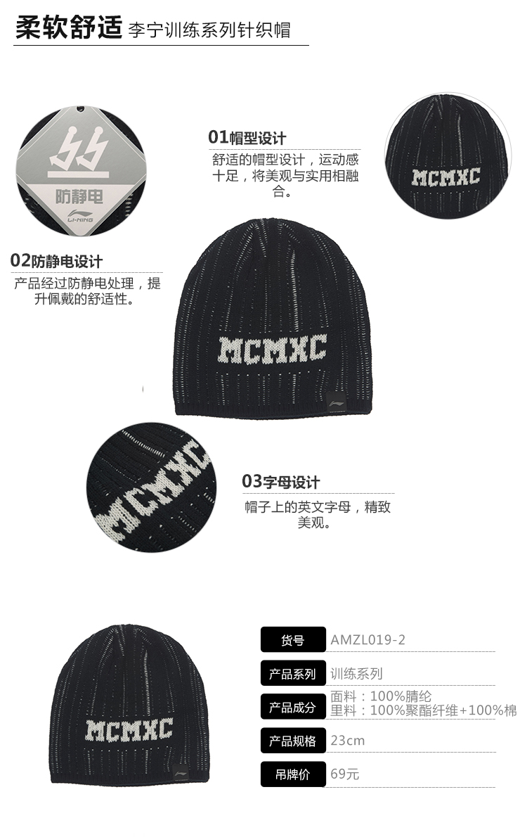李宁帽子男女正品冬季训练系列 中性针织运动帽 AMZL019 x1