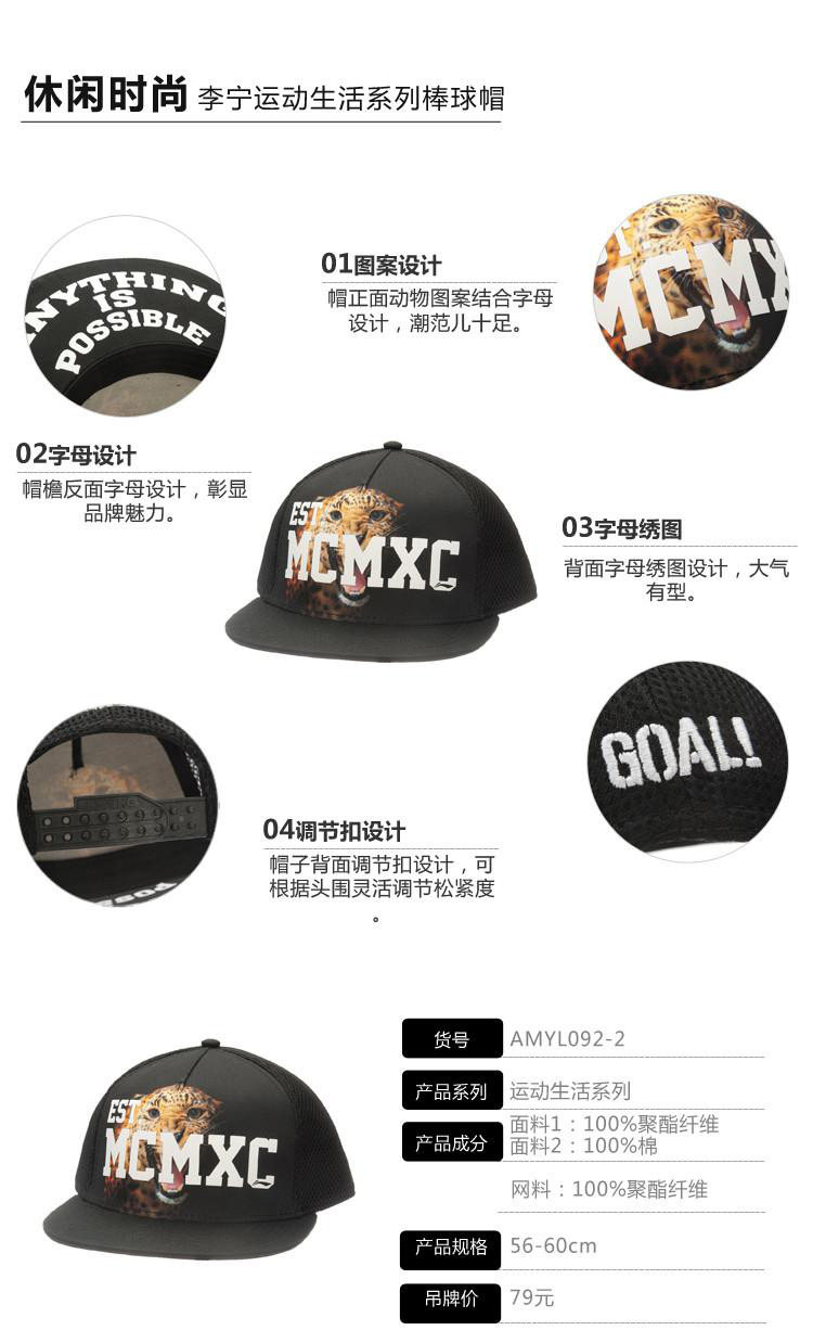 李宁运动帽子男女同款正品运动休闲平沿帽透气棒球帽中性AMYL092