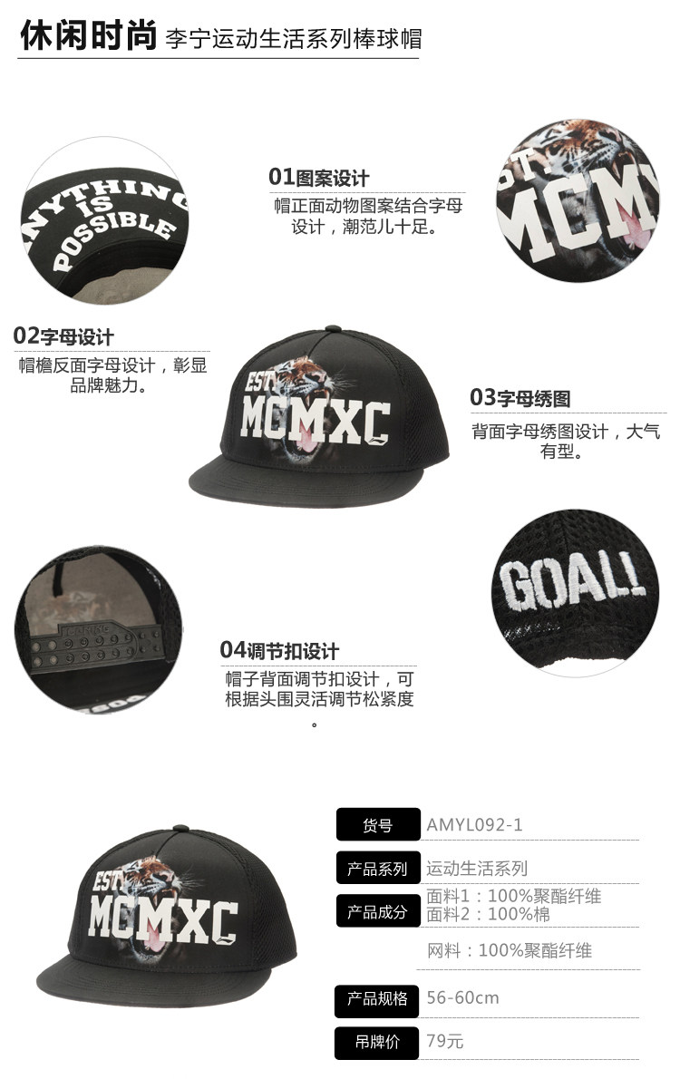 李宁运动帽子男女同款正品运动休闲平沿帽透气棒球帽中性AMYL092 x1