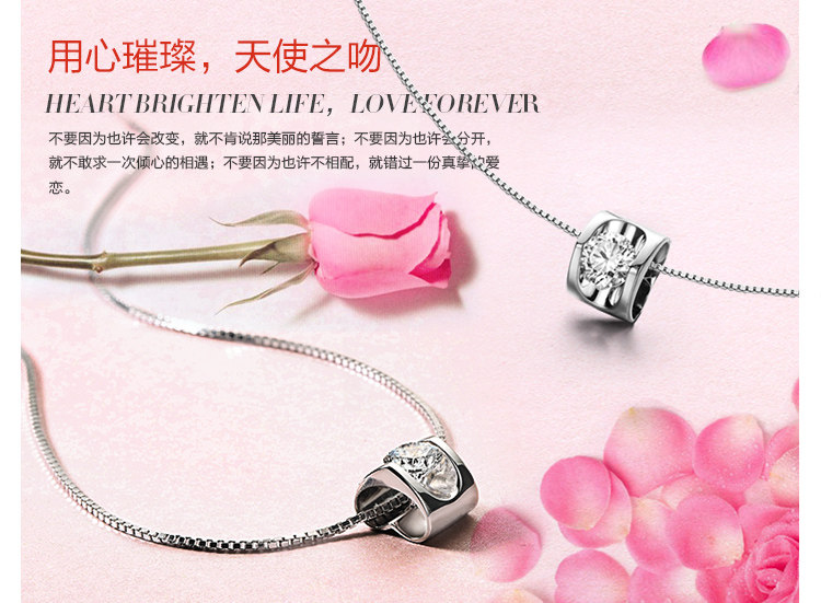 925银项链女士锁骨情侣吊坠日韩简约气质爱心形女礼物天使之吻 x1