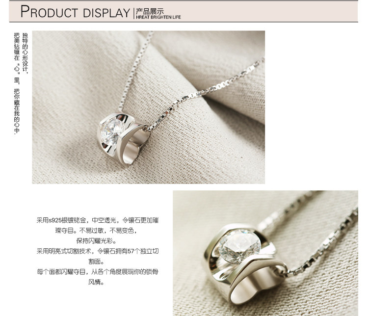 925银项链女士锁骨情侣吊坠...