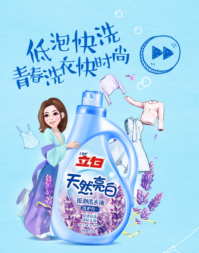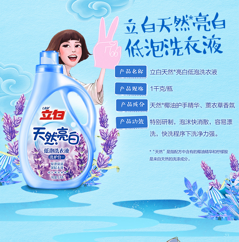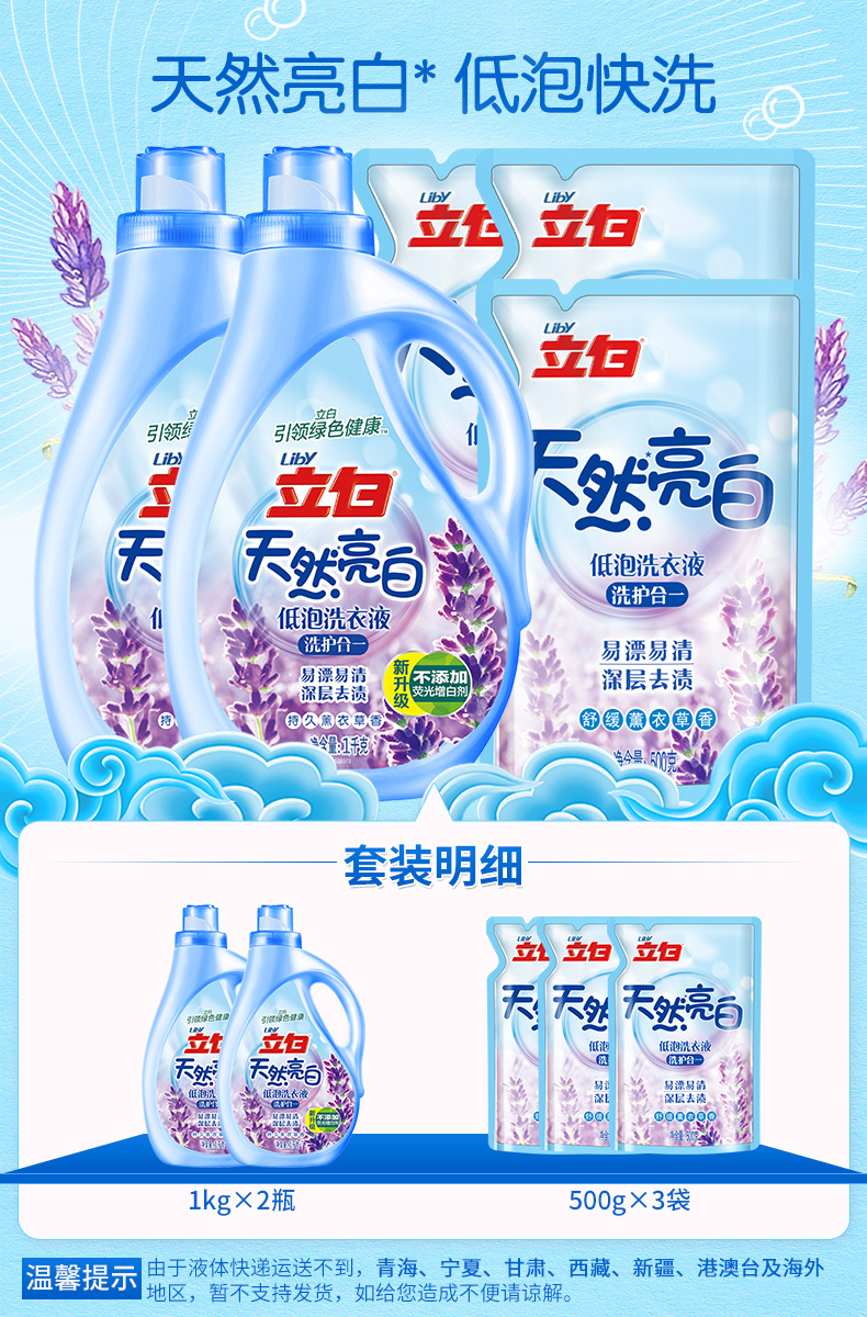 立白洗衣液 天然亮白低泡2瓶3袋装