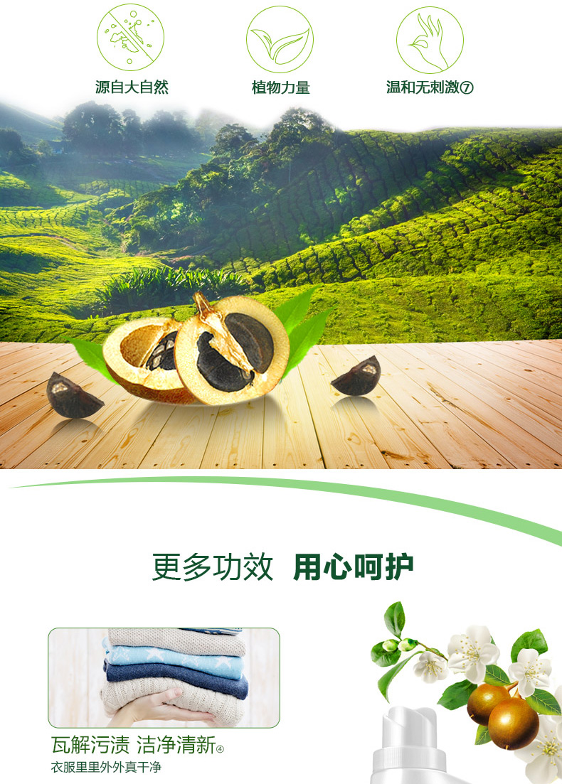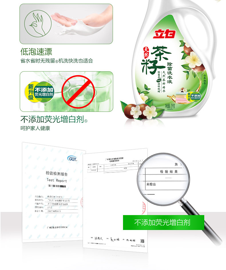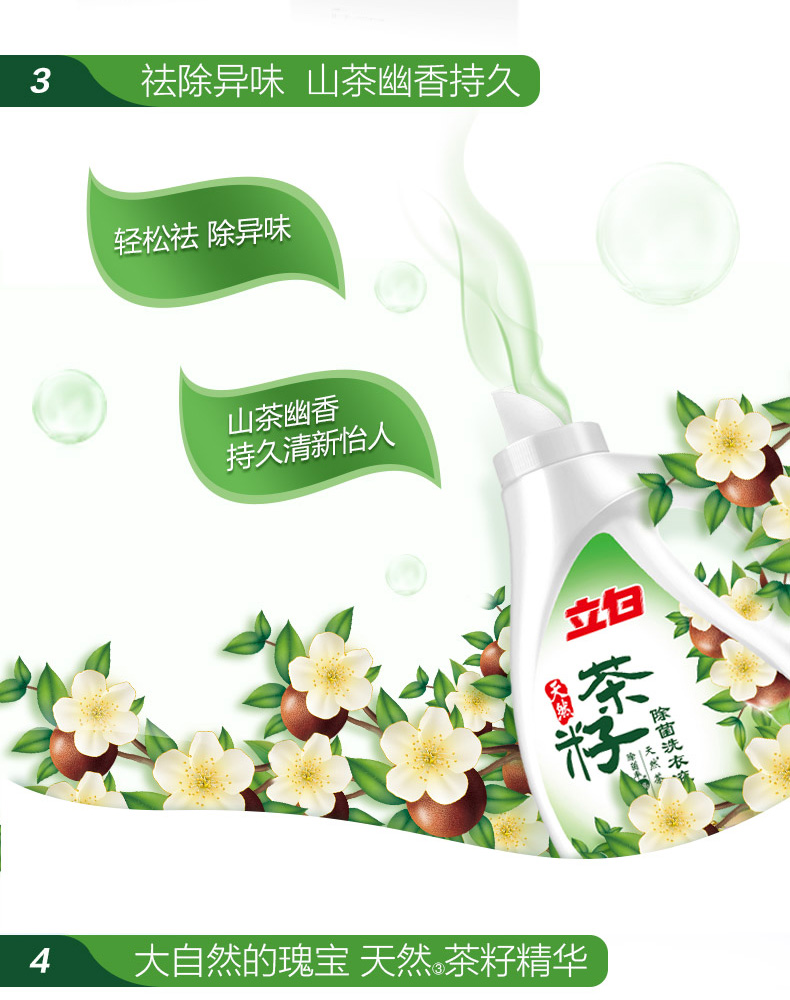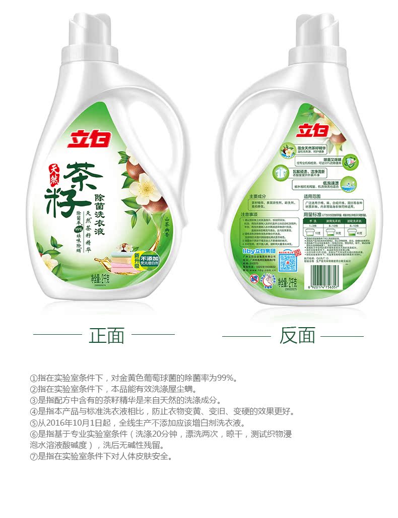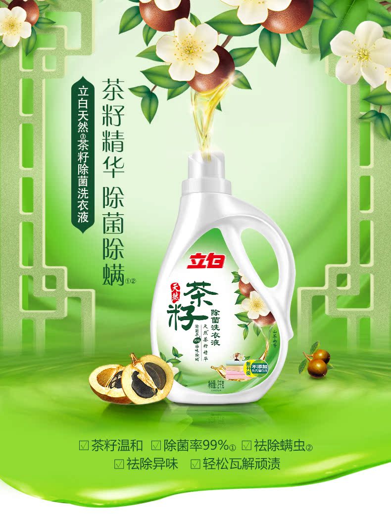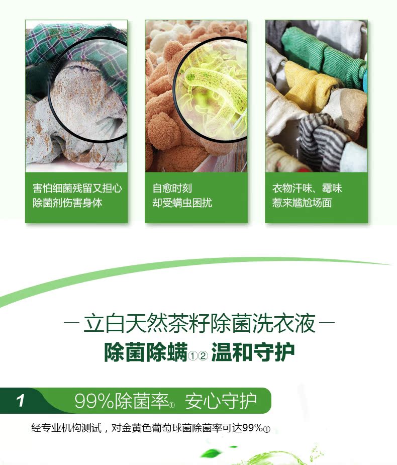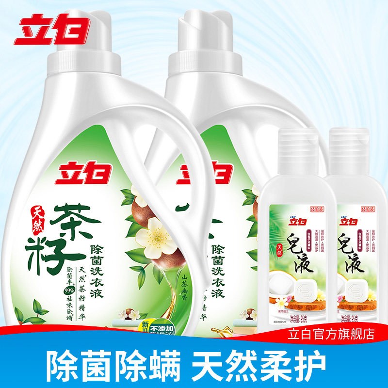 立白天然茶籽除菌除螨去味2KG*2+95g皂液*2瓶
