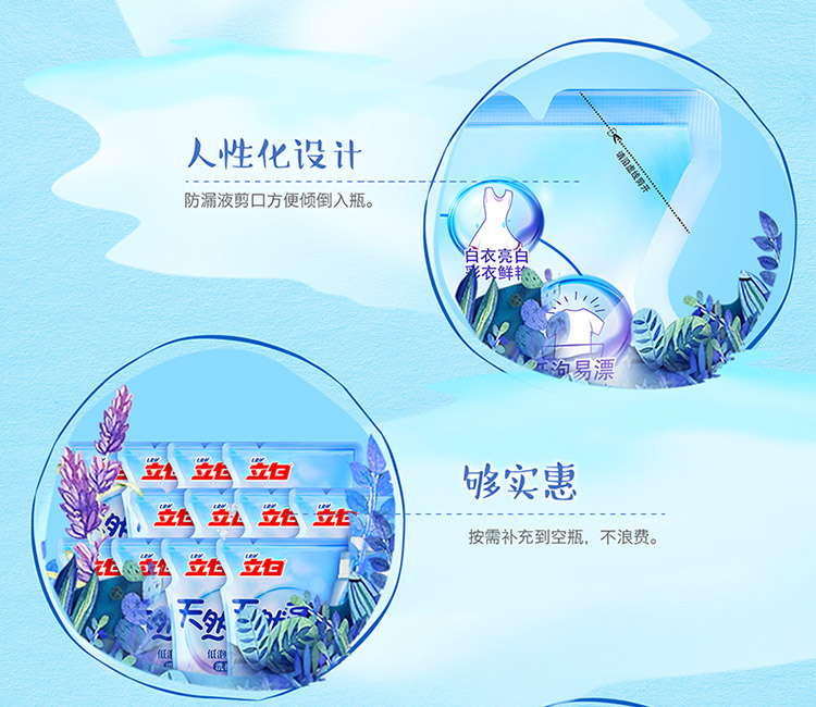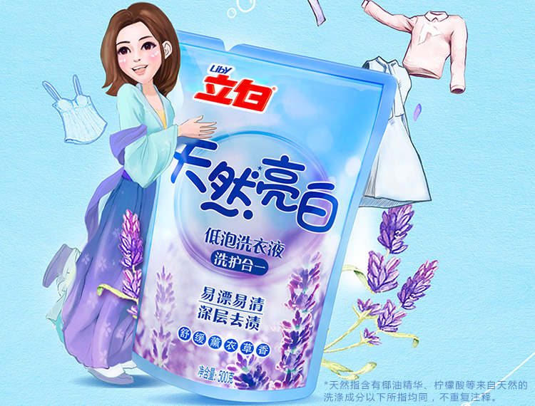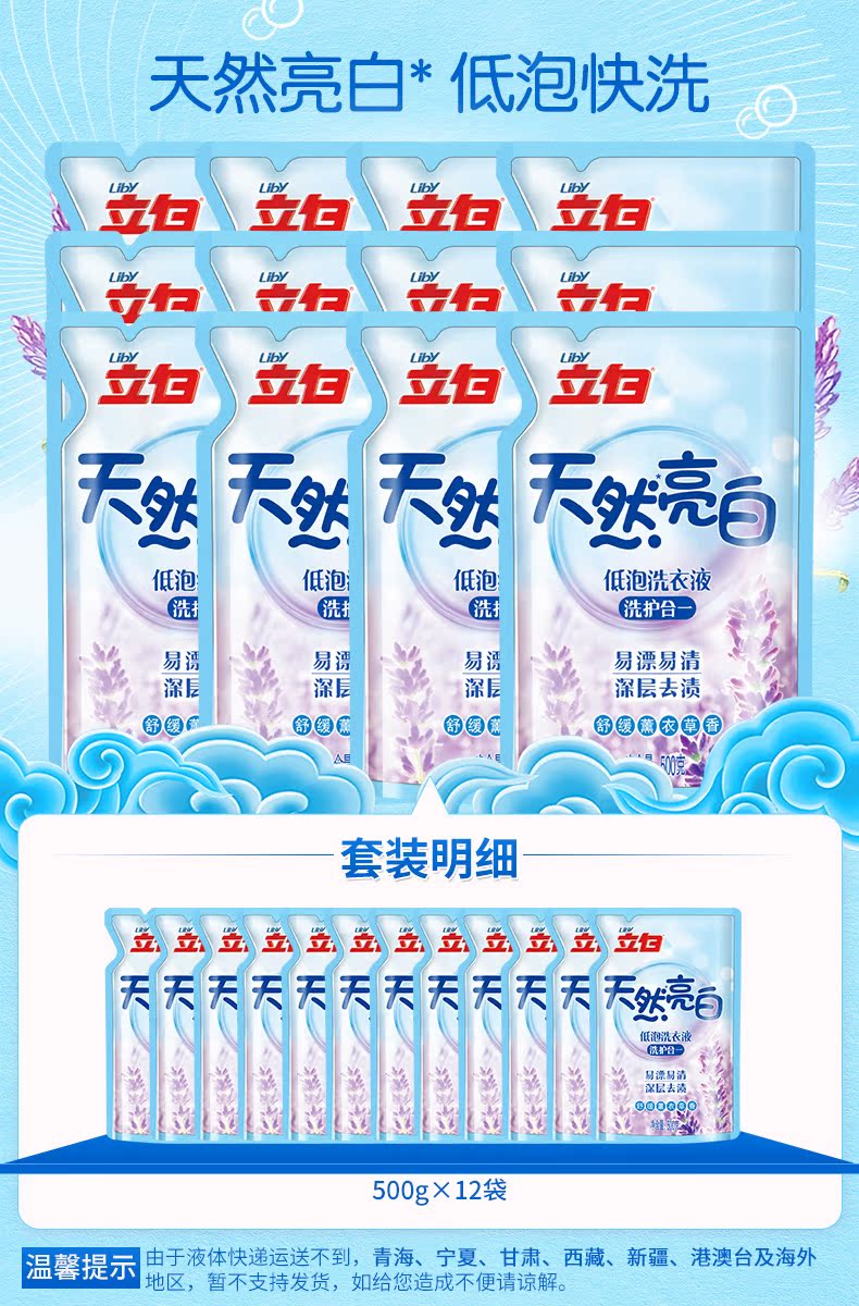 立白天然亮白低泡洗衣液补充装薰衣草香500g*12袋装 x1