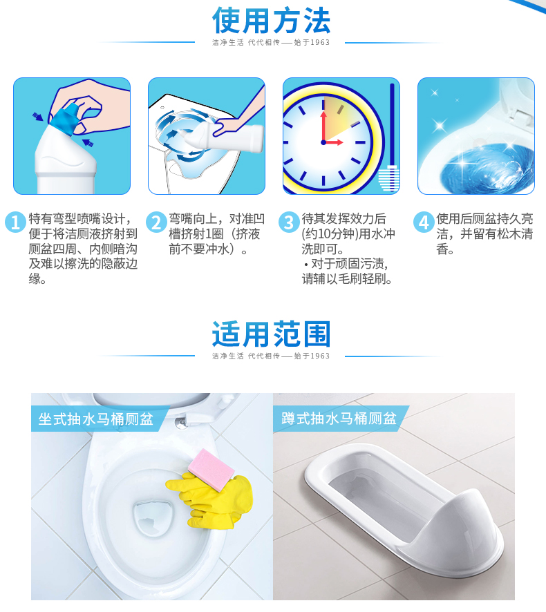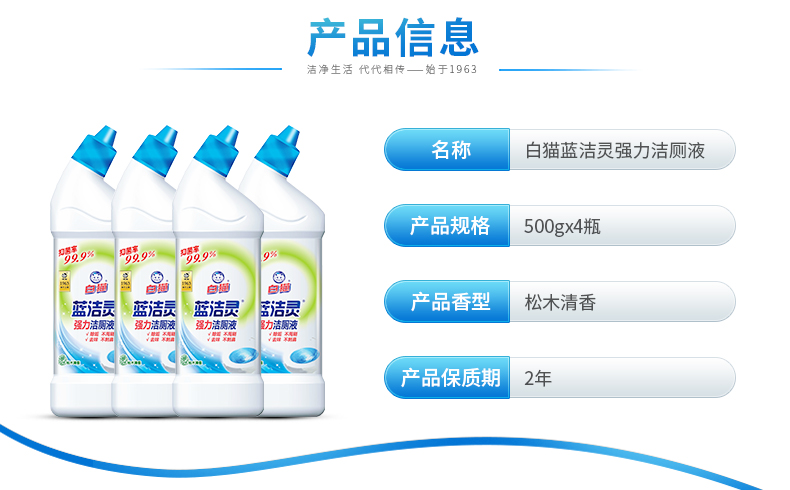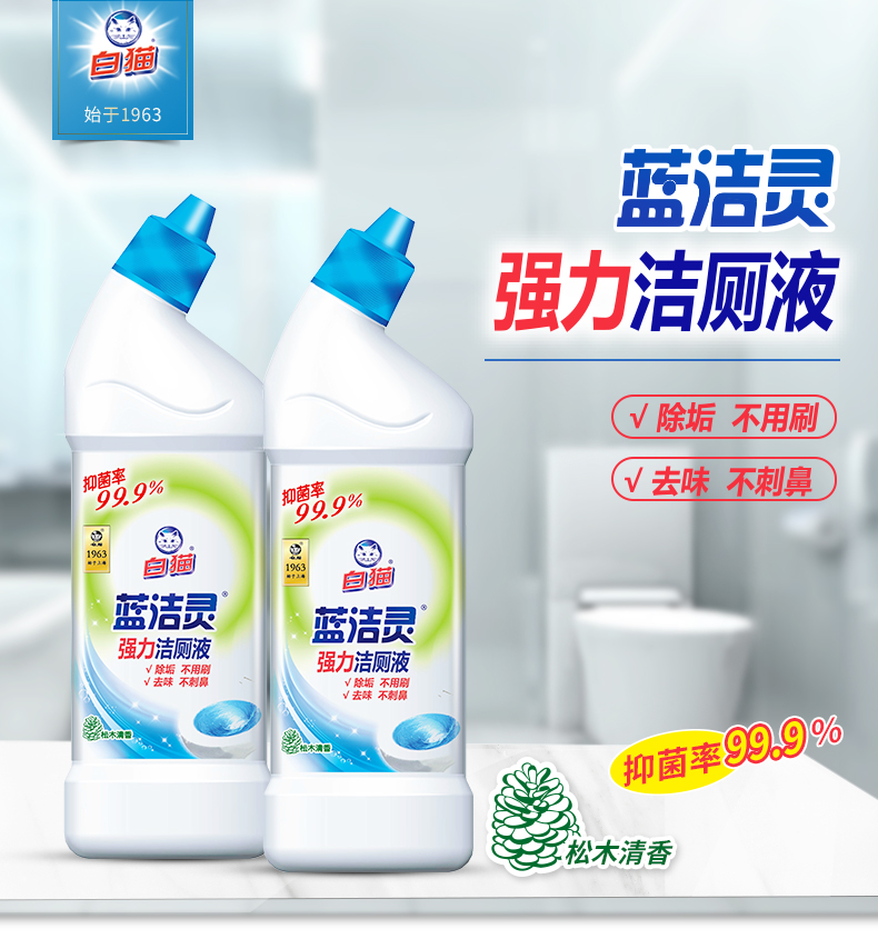 白猫蓝洁灵强力洁厕液500g*4瓶