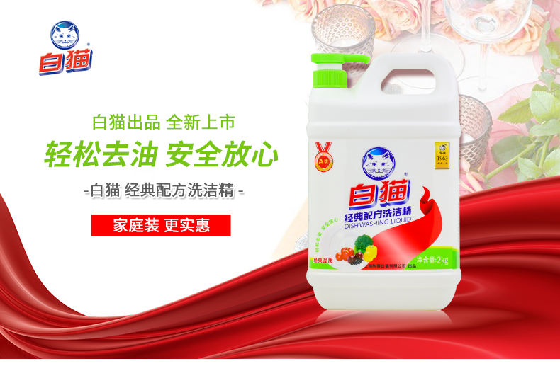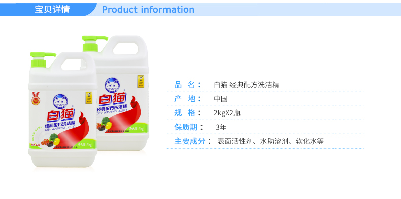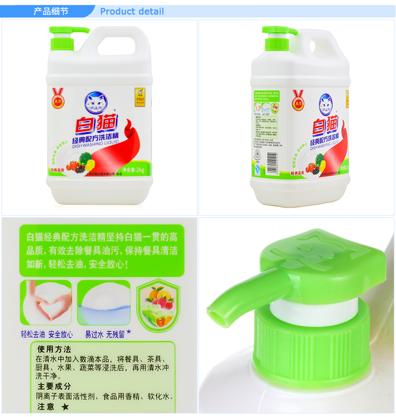 白猫经典配方洗洁精2kg*2瓶